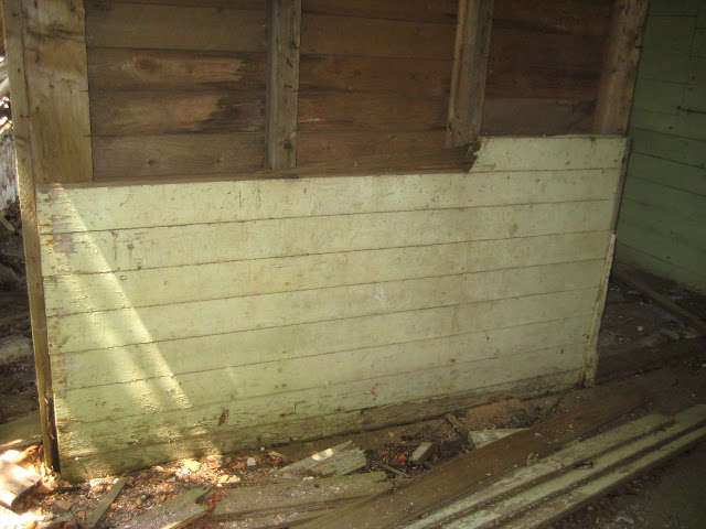 Thios hole in the ground is all that is left of Dan Munn's house. Dan was Dad's Dad's Dad's Dad. Below is the house in 1945, already falling into the ground then.